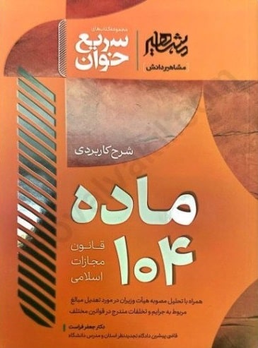 کتاب شرح کاربردی ماده 104 قانون مجازات اسلامی سریع خوان نوشته جعفر فراست توسط انتشارات مشاهیر دانش با موضوع حقوق به چاپ رسیده است.